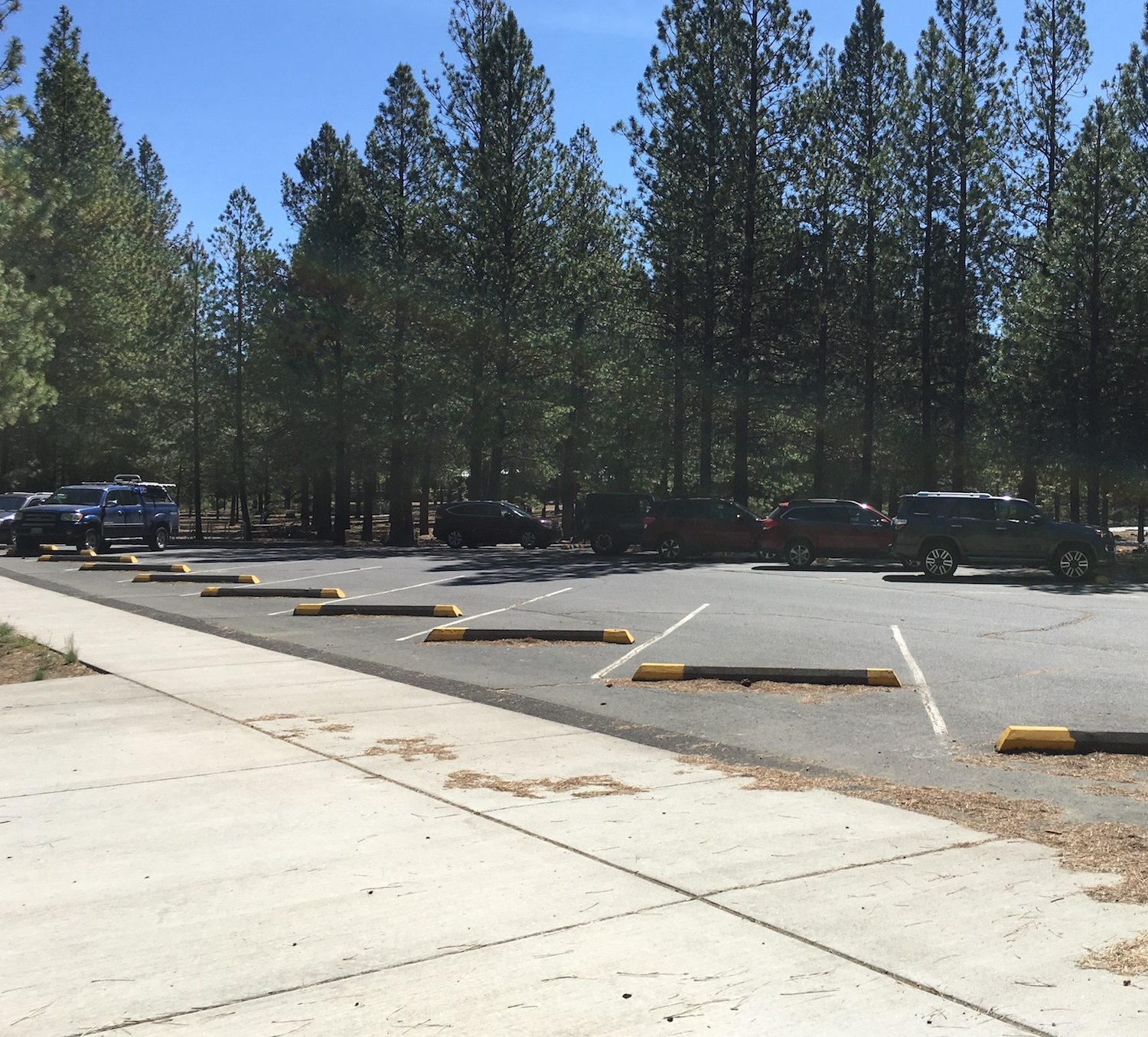The main parking area at the Lava Lands Visitor Center is currently gated off and closed for the season due to COVID-19. For alternative parking, continue past the main entrance and turn right into the Green Lot Parking area. Because this is typically overflow parking for the visitor center, there are no designated accessible parking spaces. The closest access point to the paved trails is located in the NW corner of the parking area.