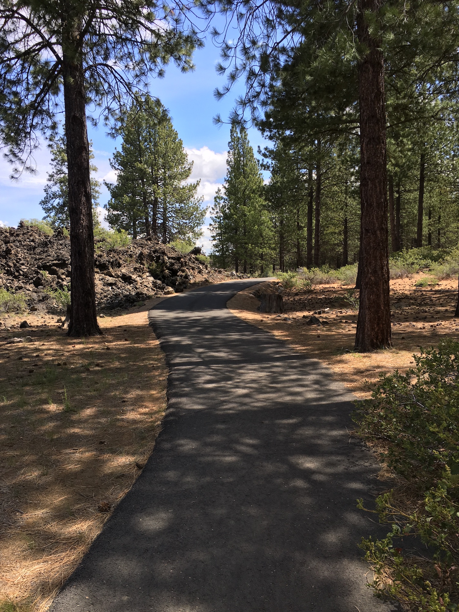 The Sun-Lava Paved trail can also be accessed from the opposite end at the Benham East Trailhead. To get to Benham East T.H., take the same Lava Lands turn off on Hwy 97, and continue past the visitors center for 4 miles on road NF-9702.