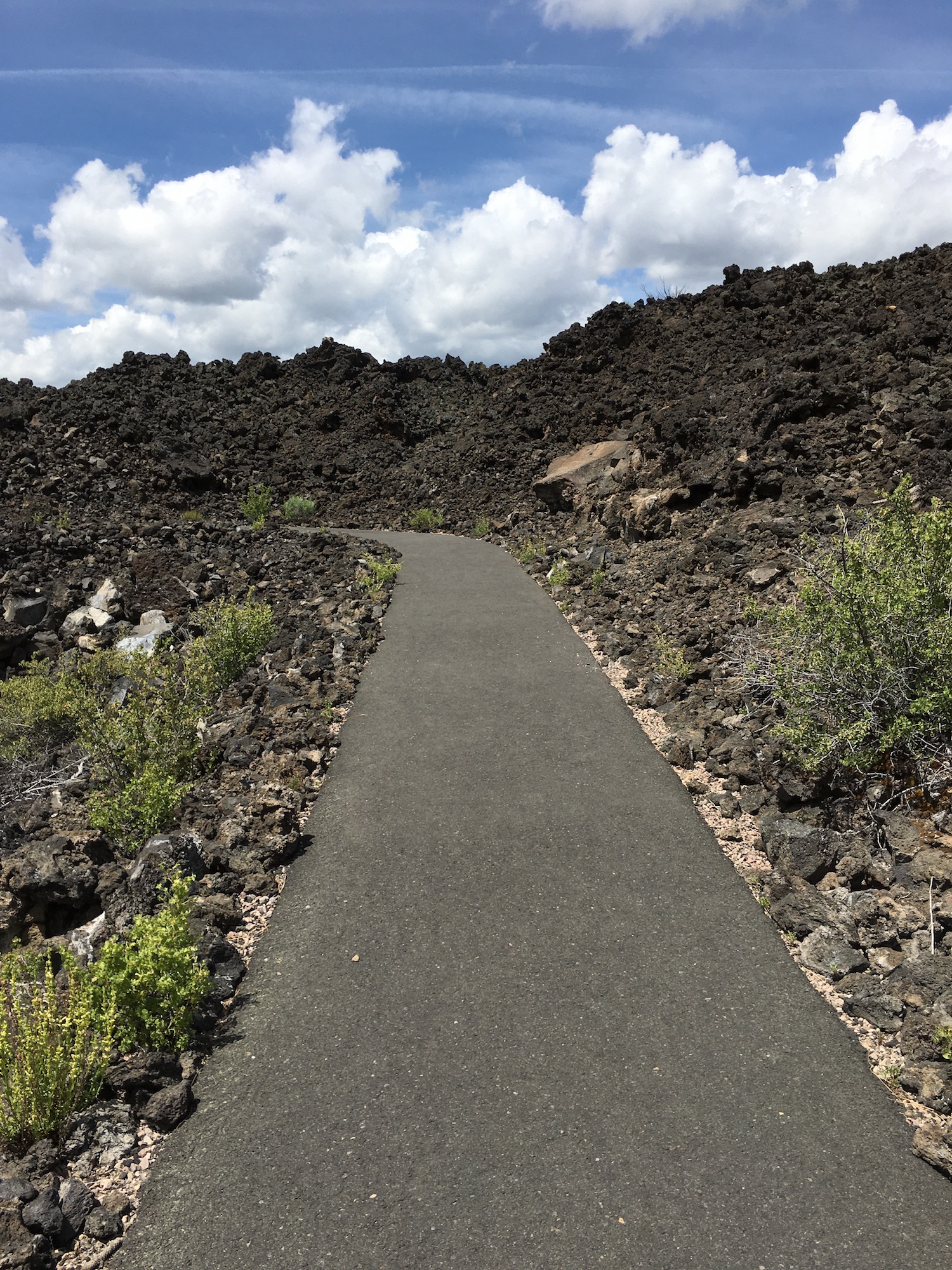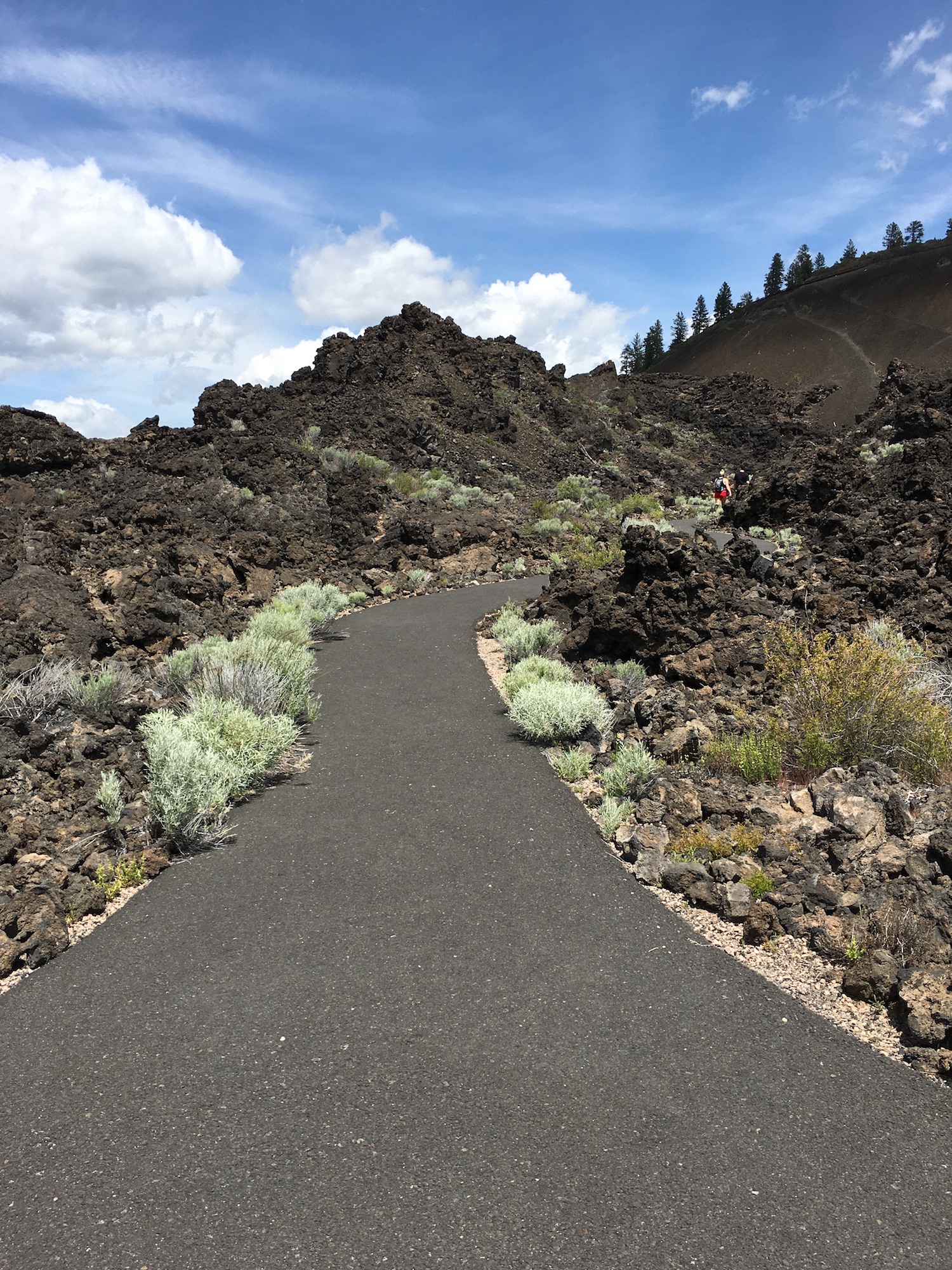 Caution: Rough, narrow, and very steep pavement continues through the lava field, and is not recommended for people using a mobility device.
