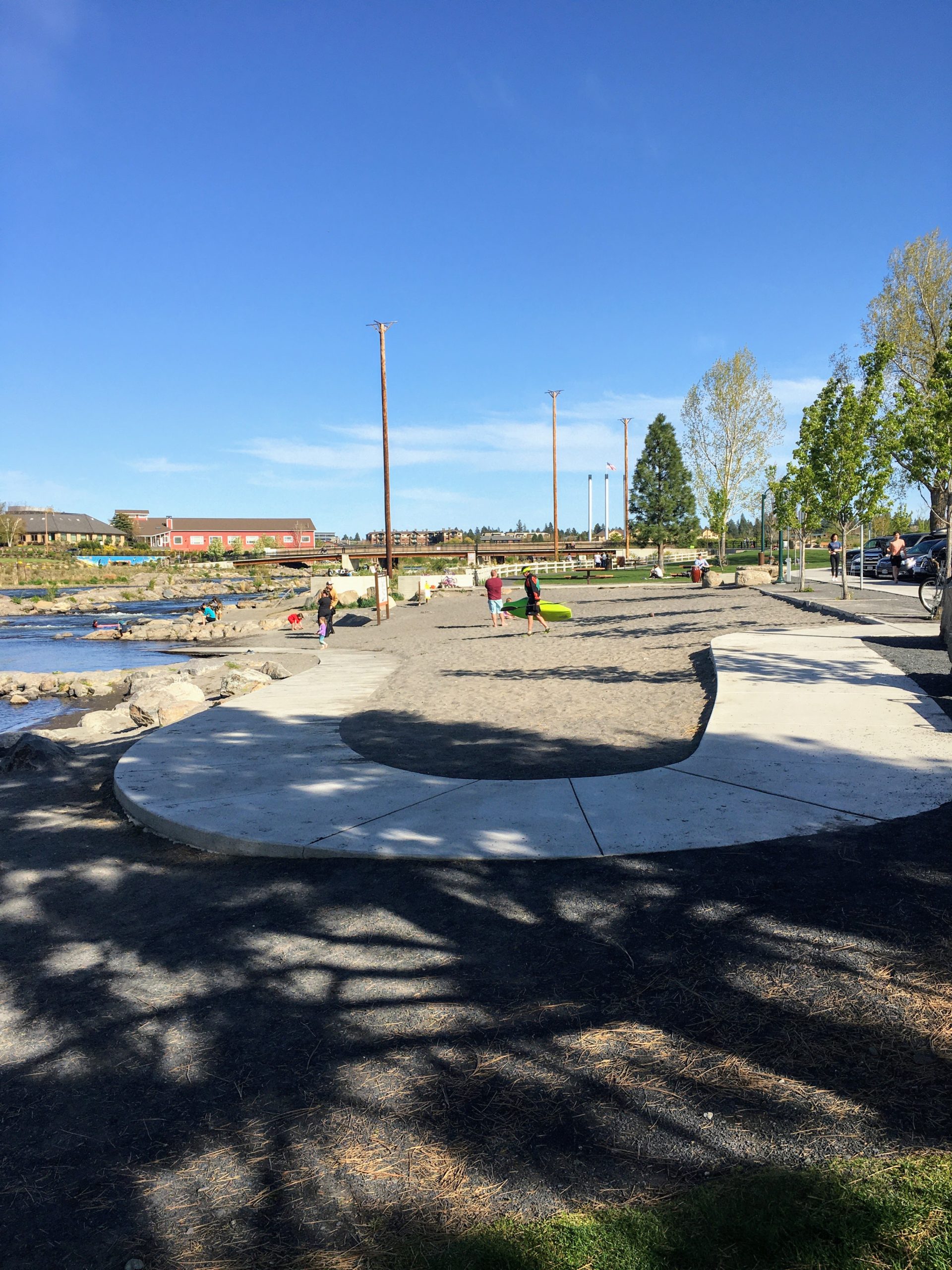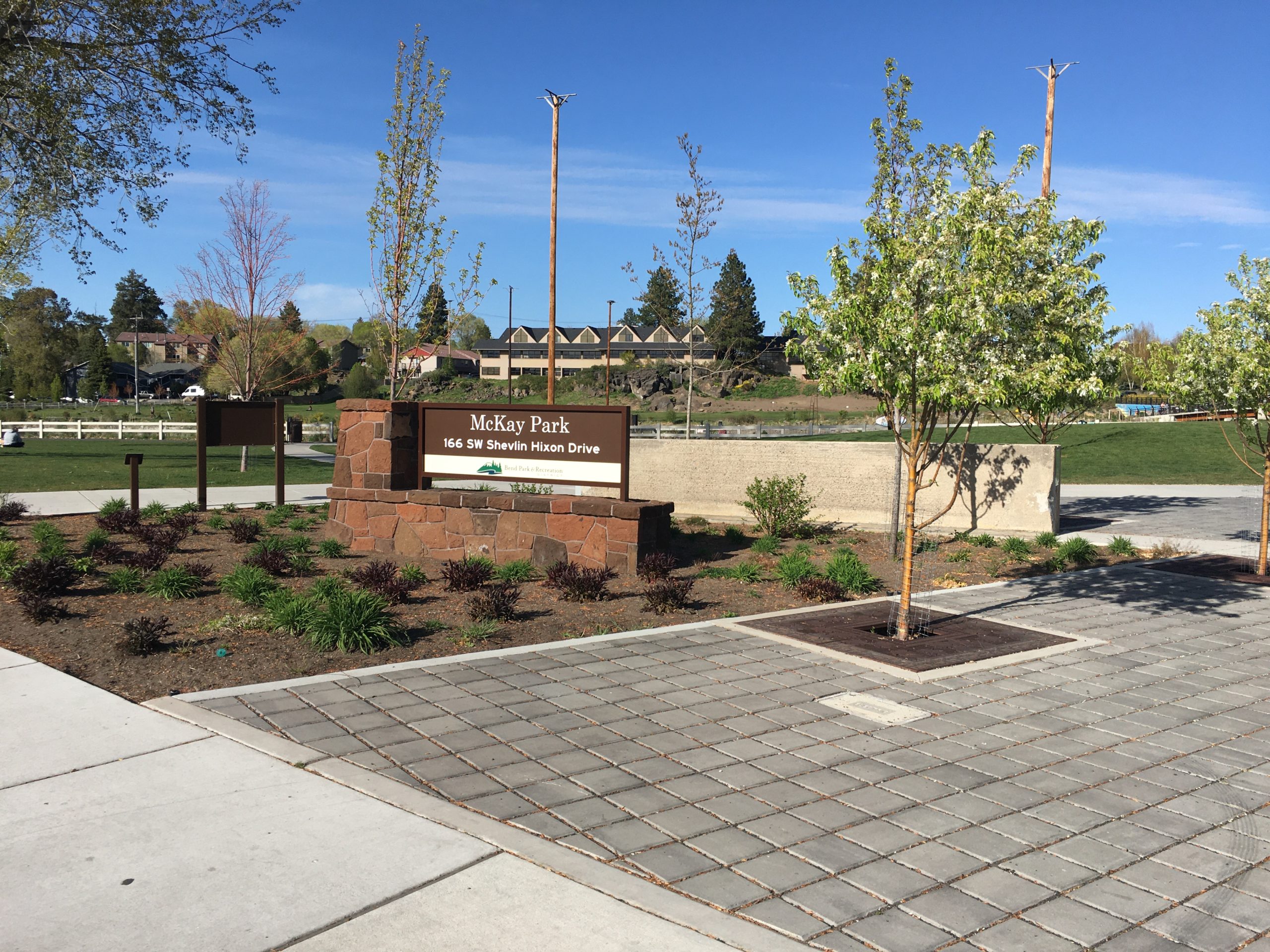 Mckay Park is a recently updated, medium sized, urban riverfront park along the Deschutes River, offering a sandy beach, easy river access for water sports, and lots of open green space for picnicking. It is located at 166 Southwest Shevlin Hixon Drive, Bend, OR.