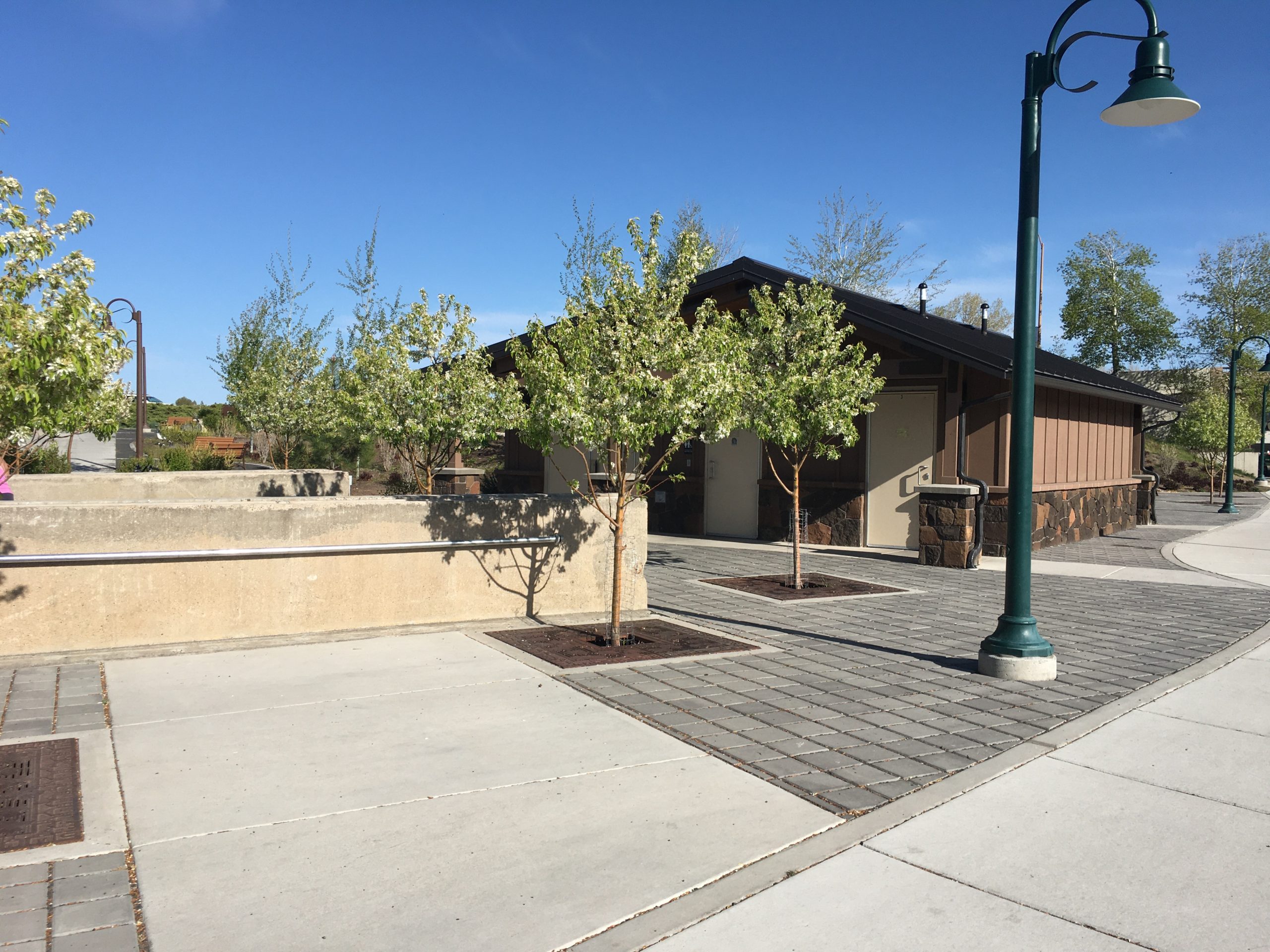 - Width: Minimum 9ft wide sidewalk, path ranging from 9ft to 20ft +