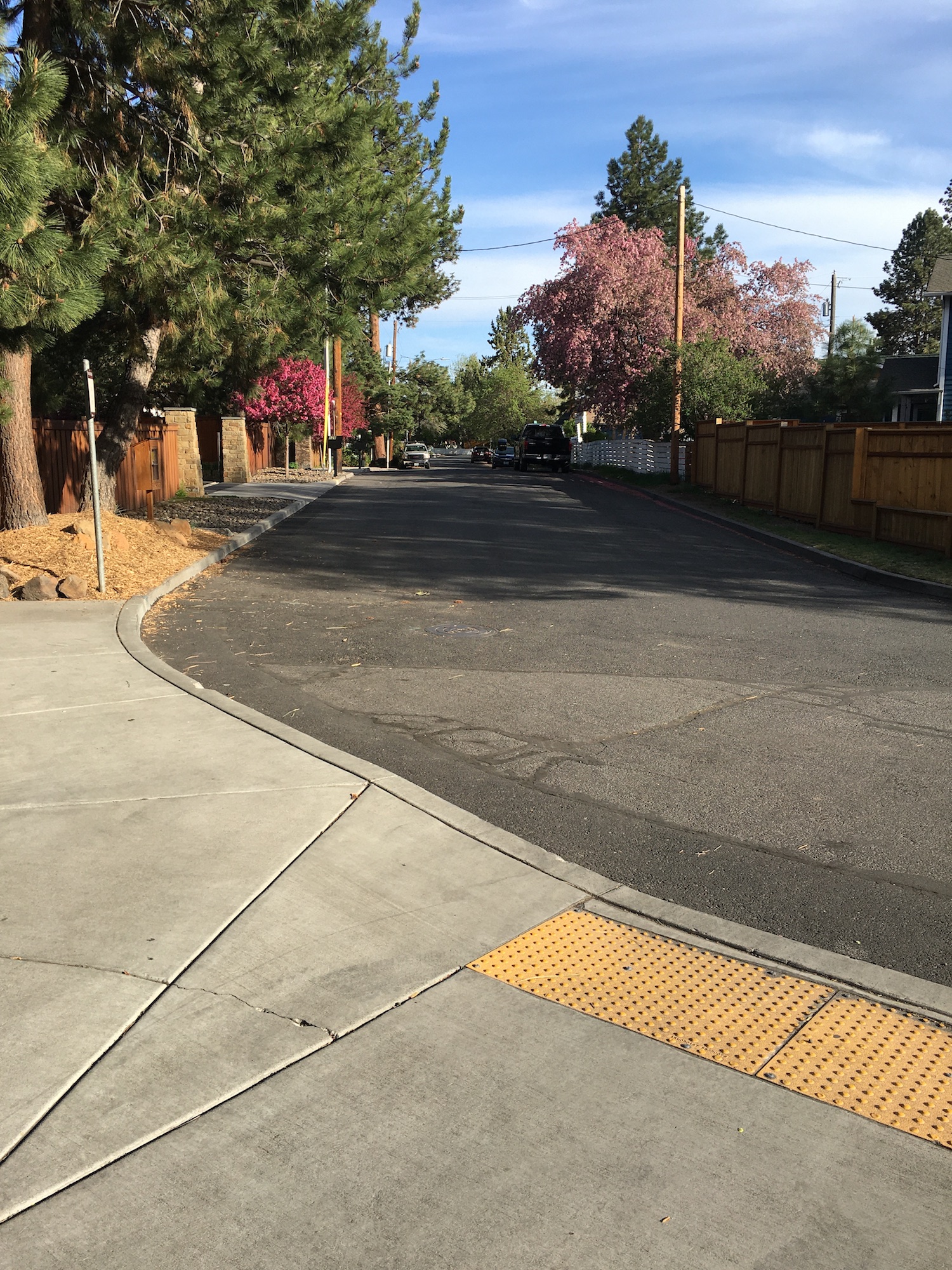 - Obstacles: 2 short areas with either no sidewalk or poorly maintained sidewalk, street access is best. Wooden bridge made with large, chunky pieces makes for a bumpy ride. A couple steep ramps from pavement to street and gravel to wooden bridge
