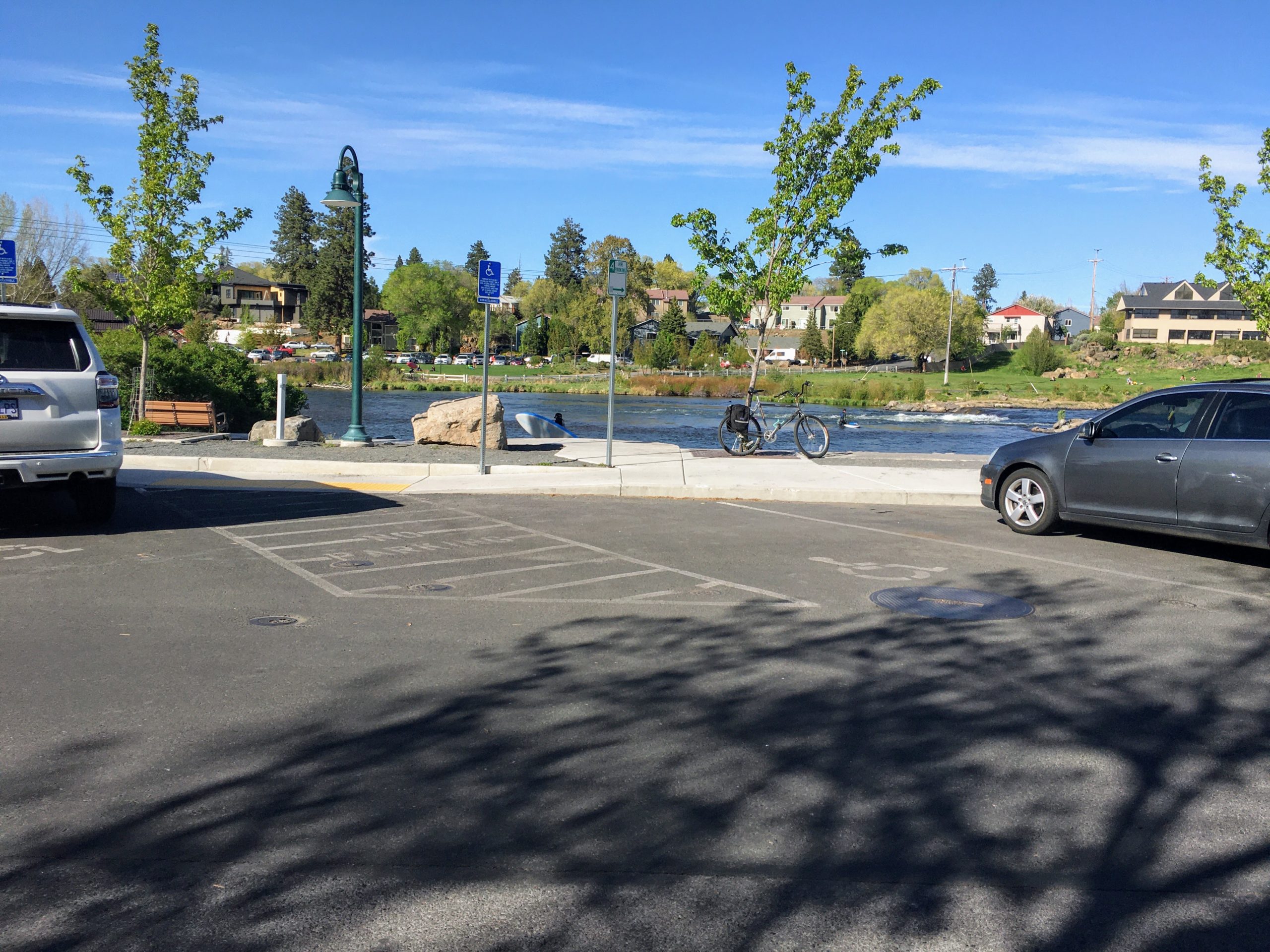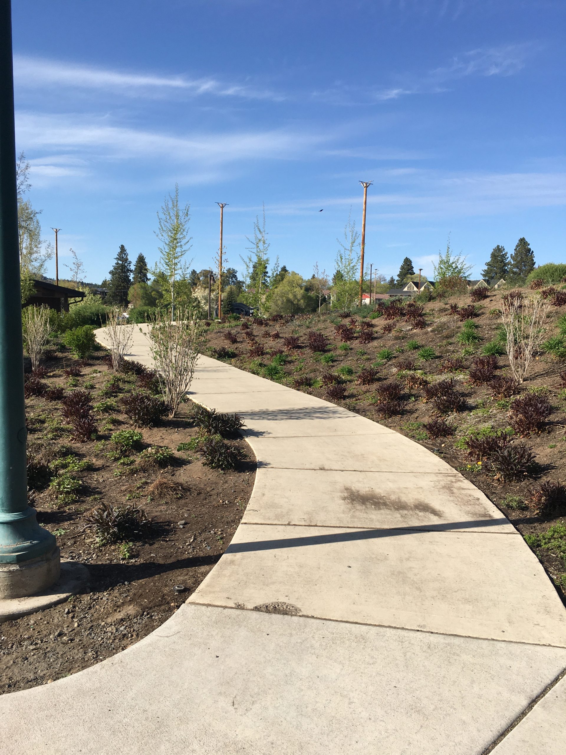 This urban portion of the Deschutes river trail is a popular spot for dog walkers, runners, and leisure cyclists.