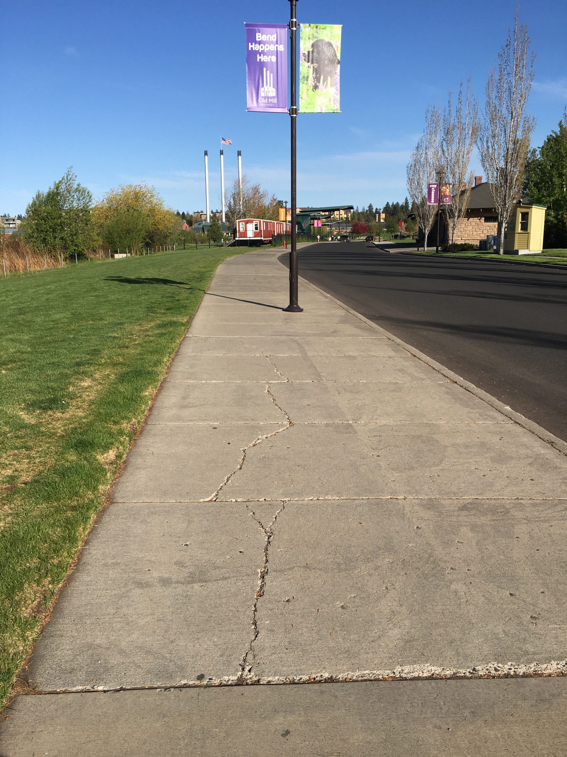 - Grade: Combination of flat terrain and both short and longer steep grades. Begins with 8% grade to cross Colorado footbridge, flat through Miller’s landing, short grades up to 10% to cross Columbia footbridge, and longer grade on Shevlin Hixon Dr. back to McKay Park