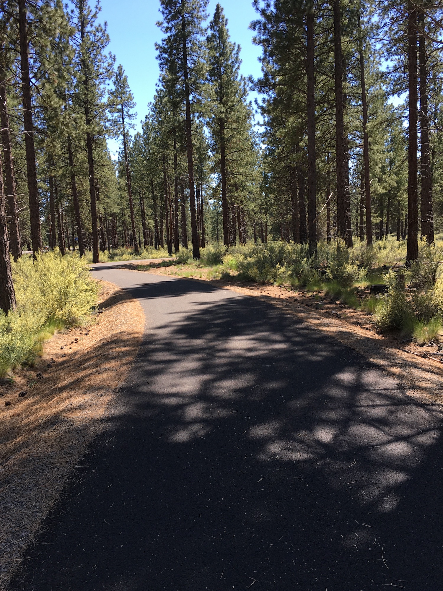 This sweeping, wide, paved path is a common corridor for cyclists and hikers entering the Deschutes National forest, and runs parallel to the Cascade Lakes Highway, gradually climbing through a ponderosa pine forest. Although it is close to the main scenic byway, the path is off set just enough that the tall pines buffer the noise of traffic and offer a great opportunity to get some exercise in a serene, forested landscape.
