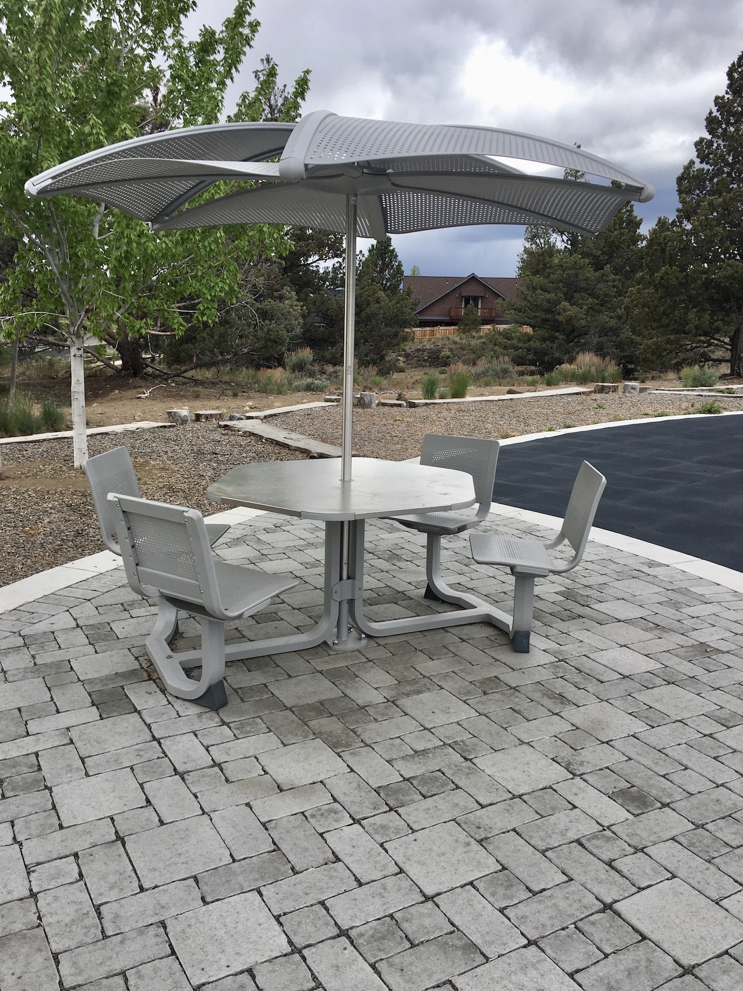 A year-round paved loop located within the boundaries of a large community park, featuring a native high desert landscape experience. Beyond the main entrance of the park, a ¾ mile paved path meanders through an old growth juniper and sagebrush landscape. There are two trail loop options for traveling through the park. One paved, one gravel. The paved route extends around the perimeter of the park with opportunities to rest at pathside benches, and a loosely packed gravel route goes a little deeper into the heart of the park. A smaller play structure and turf park at the south entrance mark a halfway point, and opportunity for restrooms and water (when on).