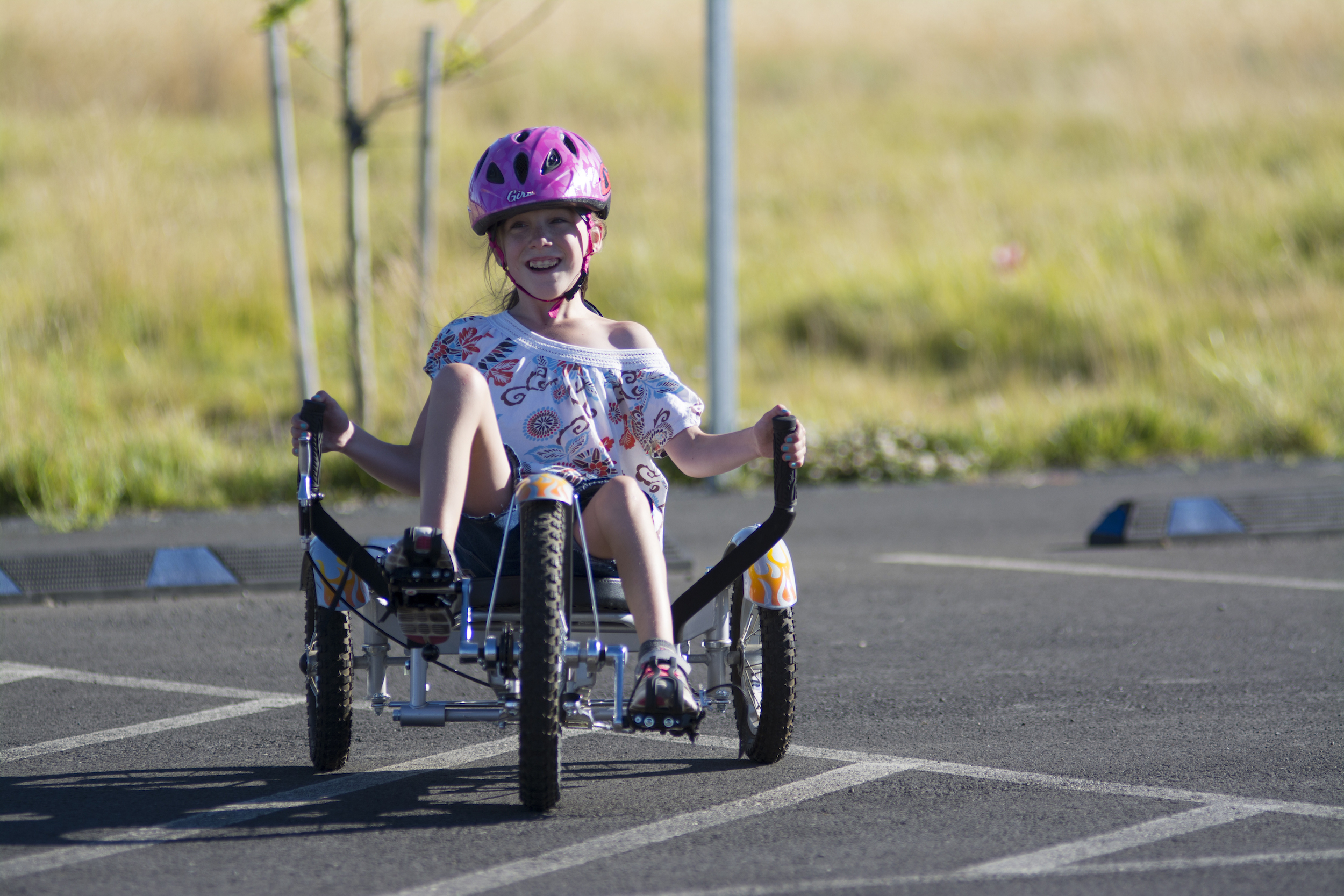 For those who do not have use of their legs, or limited use of their legs, there are youth sized handcycles in both road and off-road options. Some examples include the Top End Lil’ Excelerator, the Quickie Kids Bike and the Reactive Adaptations Wildcat.