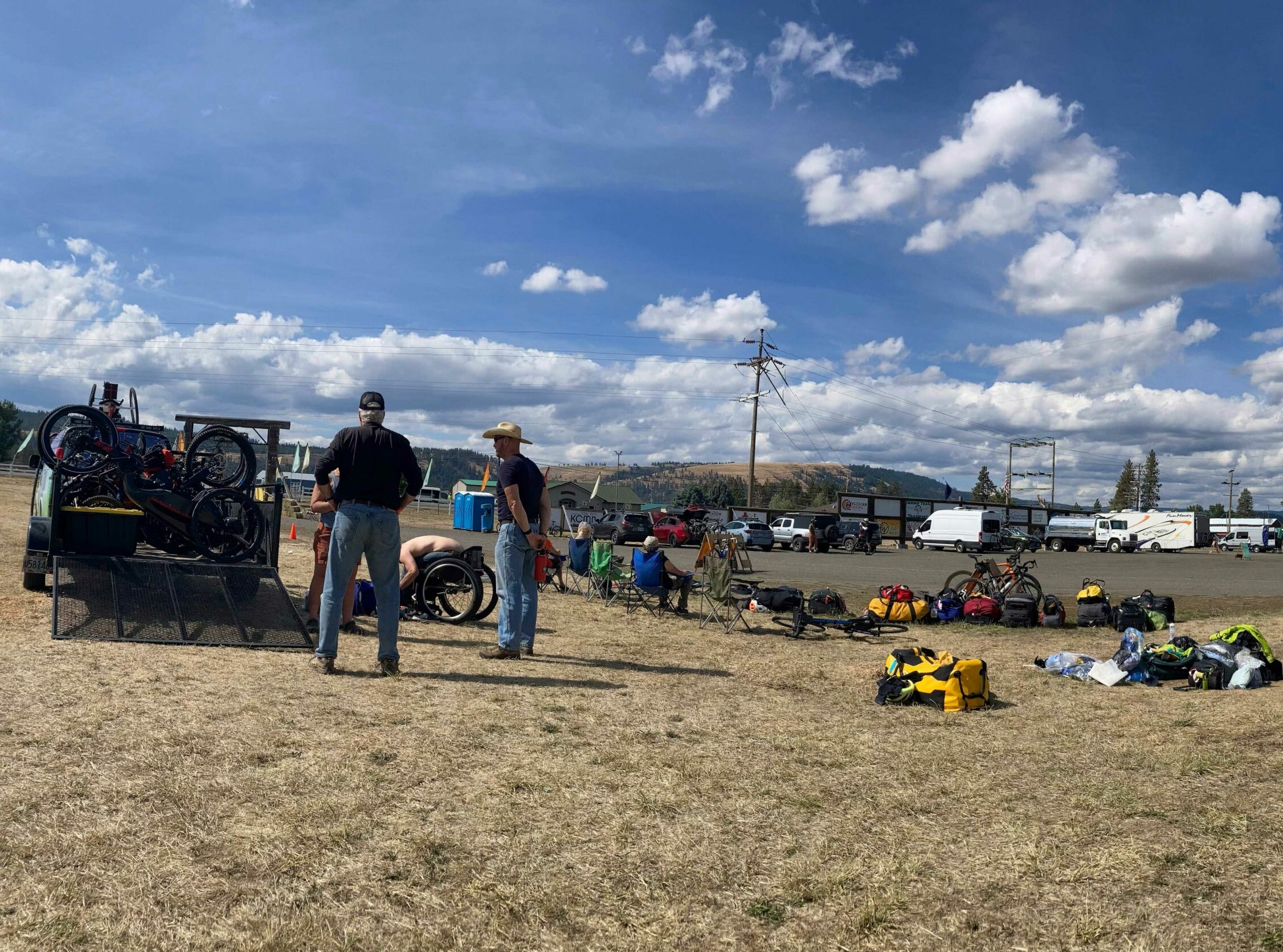 OAS provided on-course and in-camp support. On-course support looks like: Tandem captains, someone to ride with or near you, OAS sag team for on course repairs and simple fixes, transport of personal gear, and more. In-camp support included help setting up camp, loading and unloading equipment, guiding to and from events and meals, and other non-personal care needs as requested.